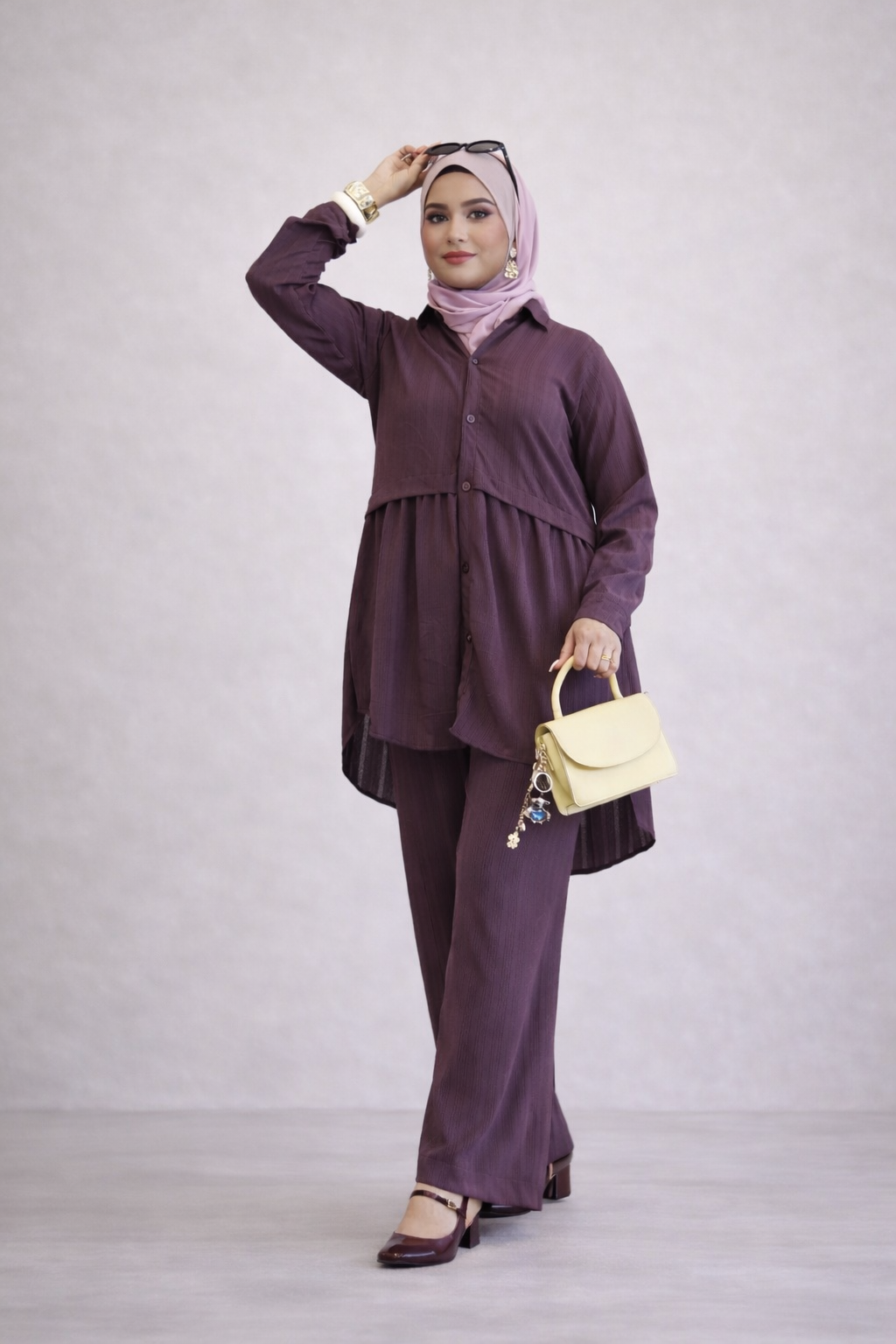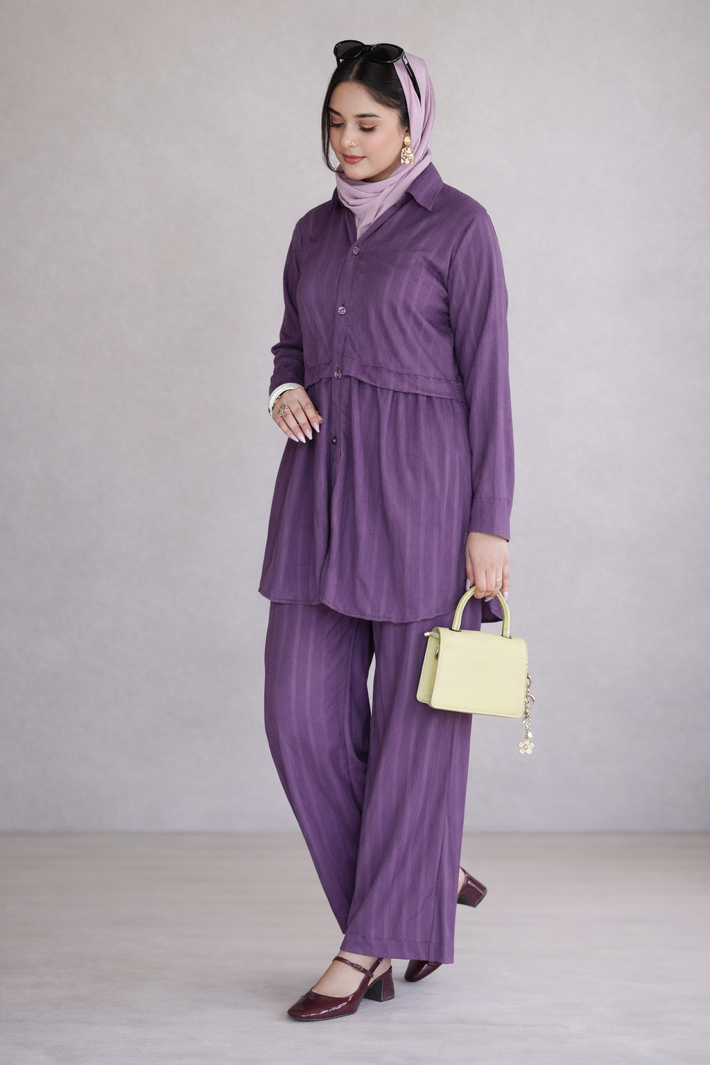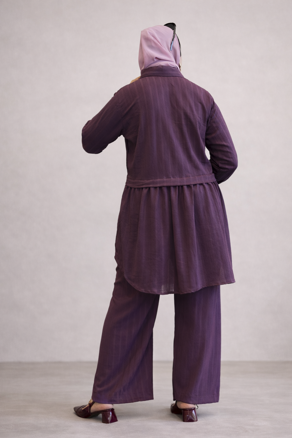 The soothing orchid purple / soft plum shade adds a subtle pop of color while remaining elegant and versatile—perfect for daytime outings, travel, workwear, or relaxed evening plans. The relaxed top paired with easy-fit bottoms ensures all-day comfort without compromising on style.