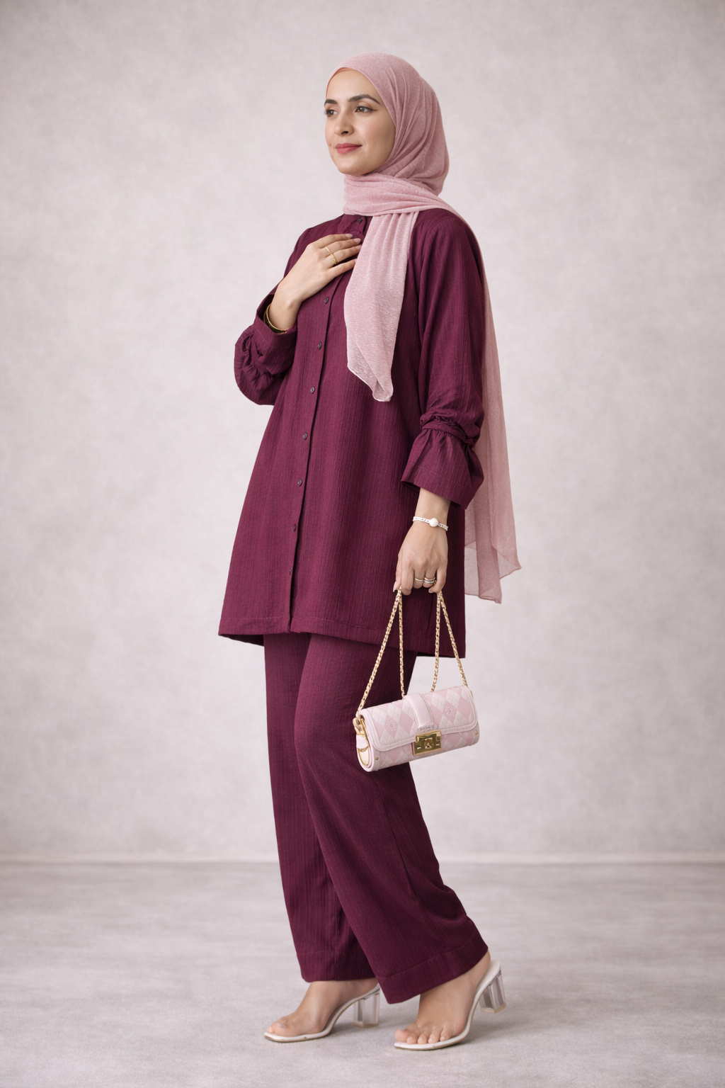 The Zyra Bloom Pleated Set is a bold yet elegant statement crafted in lightweight Crinkle Pleated Fabric. Drenched in a rich Deep Magenta hue, this ensemble captures confidence, femininity, and modern grace in one refined silhouette.